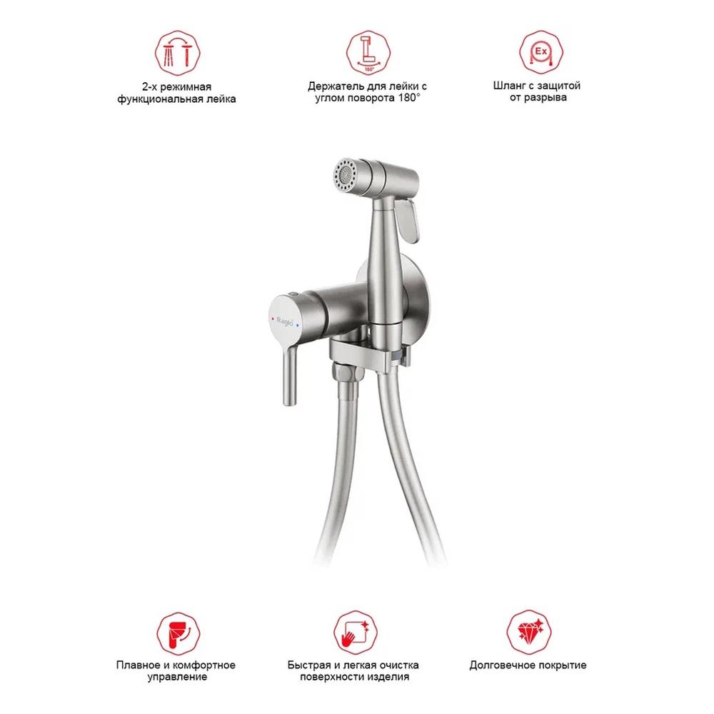 Гигиенический душ со смесителем встраиваемый Raglo R20.54.05, сатин купить по цене 12 615 руб.