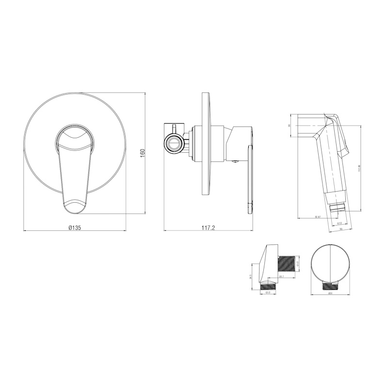 Гигиенический душ со смесителем встраиваемый VODA WF4in1, хром купить по цене 3 990 руб.