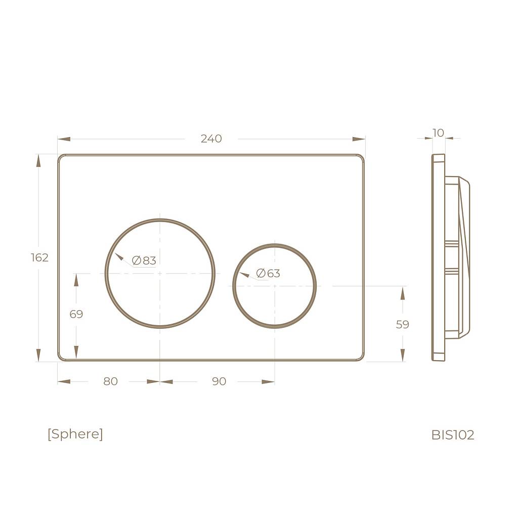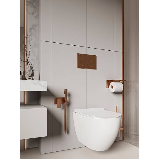 Элегантный дизайн с округлыми формами и углубленными кнопками в бронзовом цвете, создающими визуальный объем. Подходит для современных интерьеров. Идеально сочетается с унитазом Essence WC49WG.
