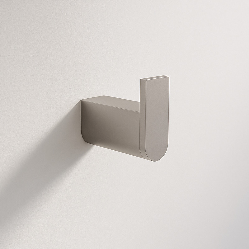 Элегантный крючок из нержавеющей стали SUS 304 с мелко брашированной поверхностью и антиследовым покрытием. Прочный и долговечный, удерживает до 5 кг вертикальной нагрузки. Легко монтируется на стену с помощью комплектных крепежей.