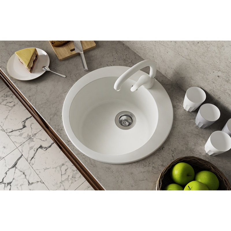 Классическая круглая мойка с изящным бортиком и вместительной чашей. Идеальная для не больших пространств.