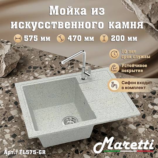 Кухонная мойка Maretti Kitchen FL575-GR, серый купить за