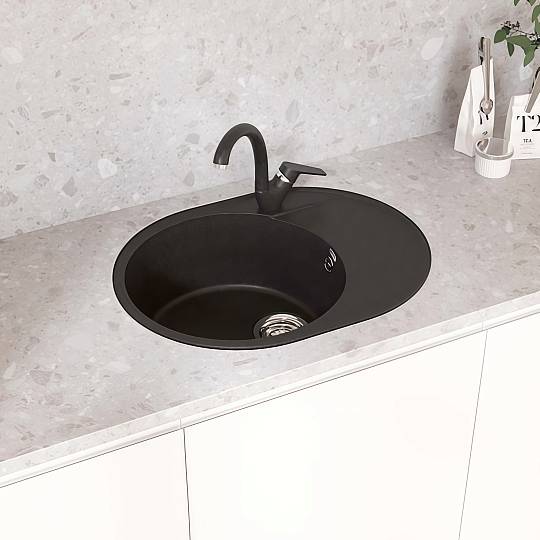 Овальная мойка Maretti Kitchen 610 KT610-BL черного цвета — оптимальное решение для компактной кухни. Модель оснащена круглой чашей и плоским крылом, которое можно разместить слева или справа (реверсивная конструкция).