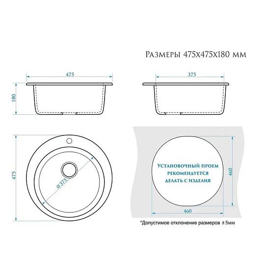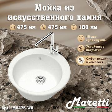 Кухонная мойка Maretti Kitchen MR475-WH, белый. Размер мойки: 47,5*47,5*18 см. Форма: круглая. Крыло: нет. Минимальная ширина кухонного шкафа: 45.