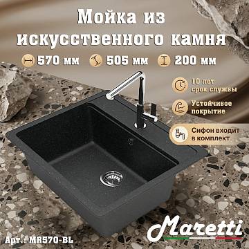 Кухонная мойка Maretti Kitchen MR570-BL, черный купить за 6 969 руб.