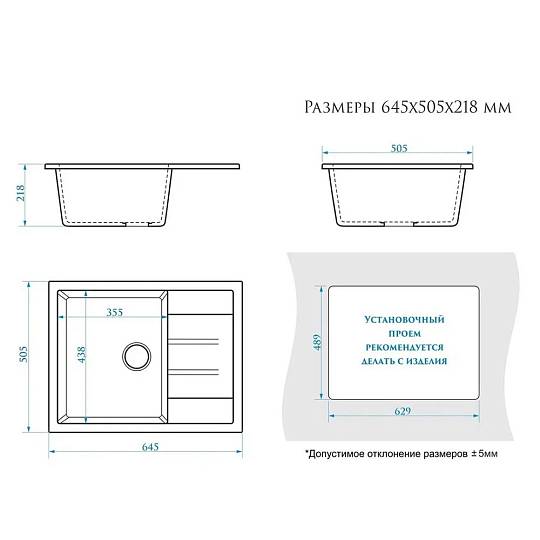 Кухонная мойка Maretti Kitchen MR645-BL, черный. Размер мойки: 64,5*50,5*21,8 см. Форма: прямоугольная. Крыло: да. Минимальная ширина кухонного шкафа: 45.