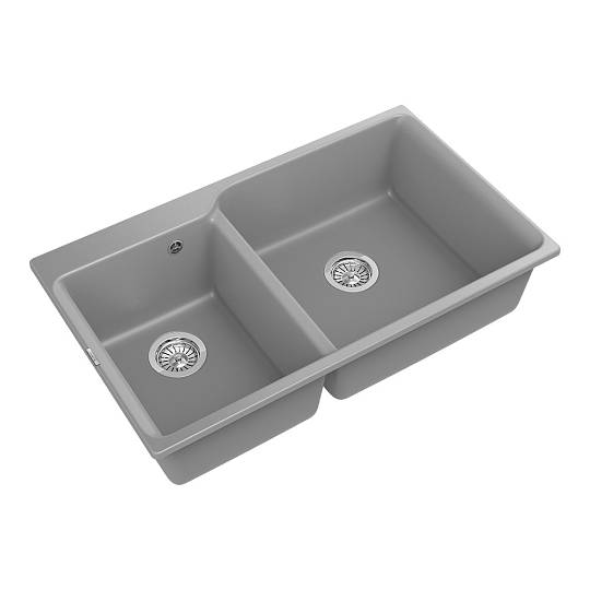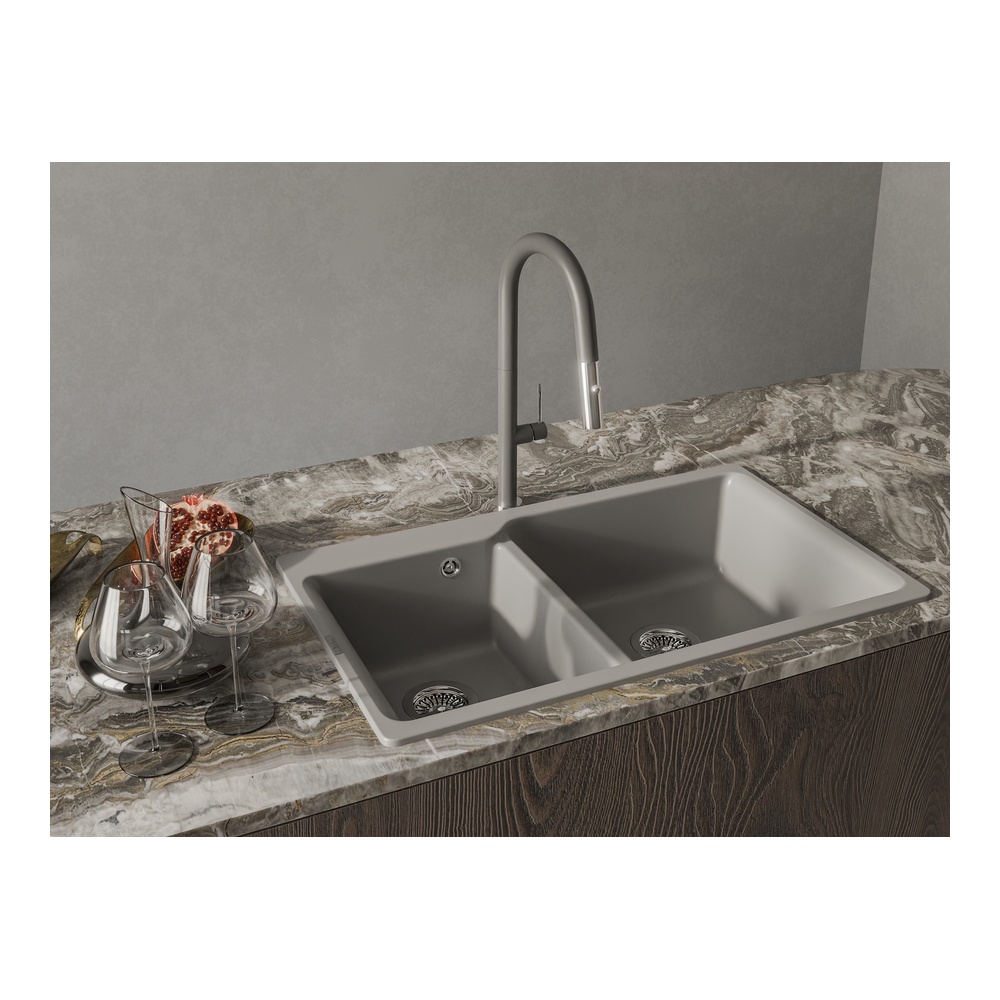 Кухонная мойка Rivelato AXEL X-90D, серый металлик. Для кухонного шкафа 90 см. Материал — кварцевый композит. Производство: Италия. Гарантийный срок: 5 лет.
