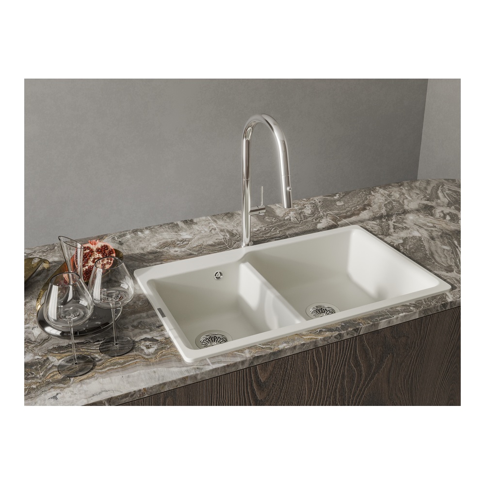 Кухонная мойка Rivelato AXEL X-90D, топаз. Для кухонного шкафа 90 см. Материал — кварцевый композит. Производство: Италия. Гарантийный срок: 5 лет.