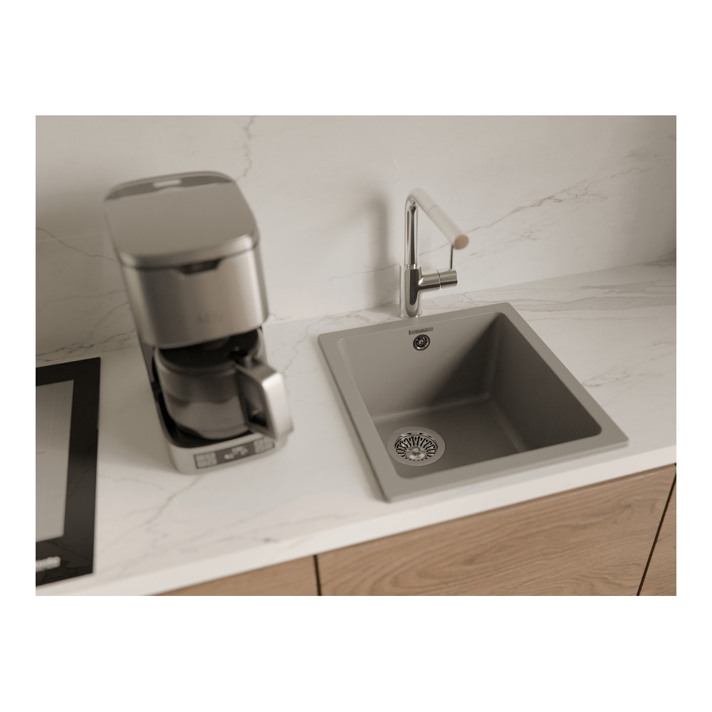 Кухонная мойка Rivelato BERKANA BK-35, серый металлик. Материал — кварцевый композит. Производство: Италия. Гарантийный срок: 5 лет.