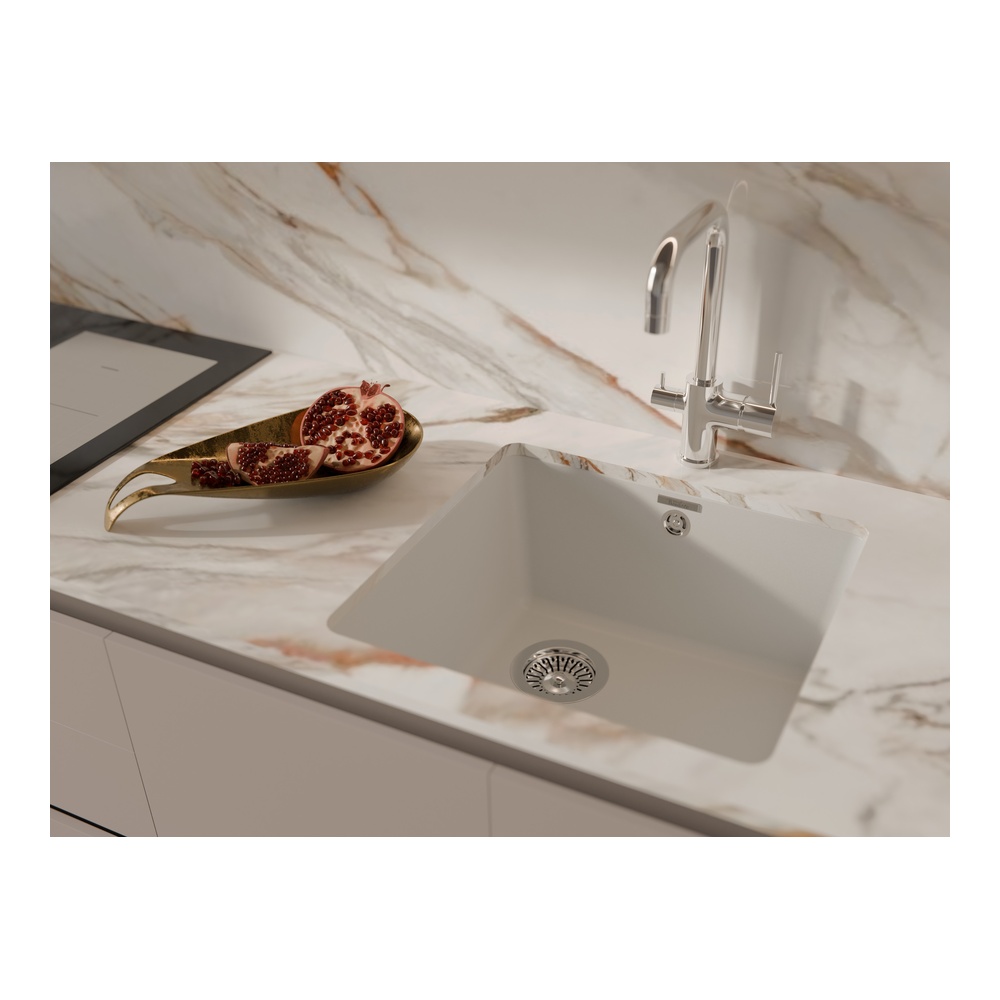 Кухонная мойка Rivelato BERKANA BK-45, иней. Материал — кварцевый композит. Производство: Италия. Гарантийный срок: 5 лет.