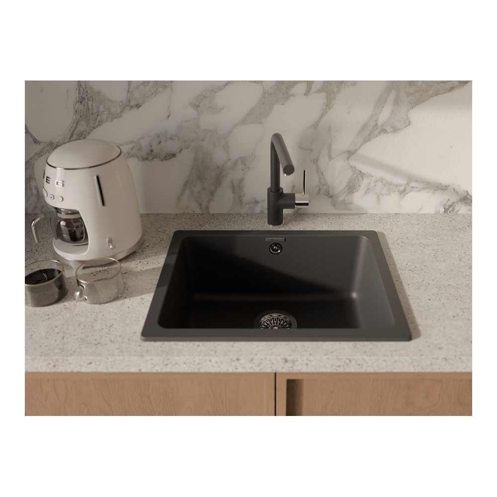Кухонная мойка Rivelato BERKANA BK-50, антрацит. Материал — кварцевый композит. Производство: Италия. Гарантийный срок: 5 лет.