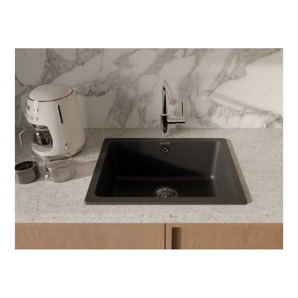 Кухонная мойка Rivelato BERKANA BK-50, черный. Материал — кварцевый композит. Производство: Италия. Гарантийный срок: 5 лет.