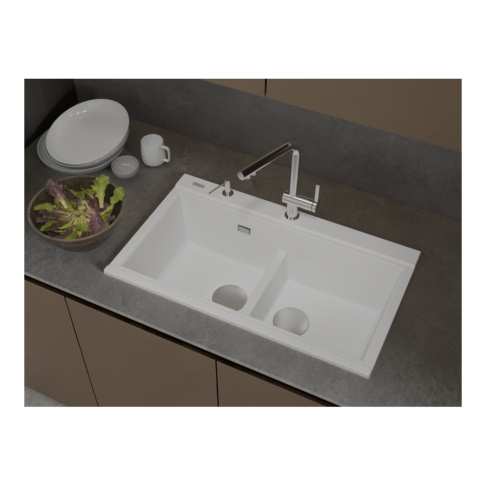 Кухонная мойка Rivelato FONDE FN-8638-2, белый. Для кухонного шкафа 90 см. Материал — кварцевый композит. Производство: Италия. Гарантийный срок: 5 лет.