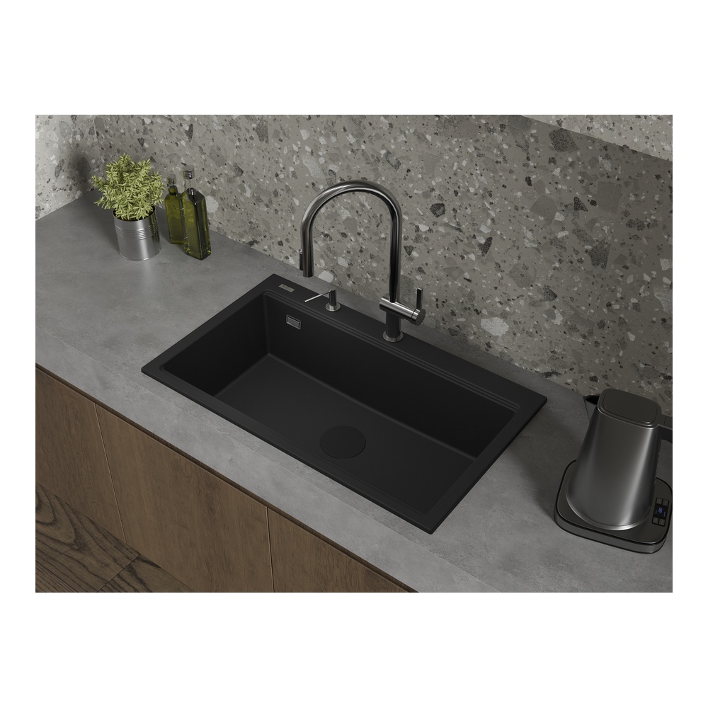 Кухонная мойка Rivelato FONDE FN-8638, черный. Для кухонного шкафа 90 см. Материал — кварцевый композит. Производство: Италия. Гарантийный срок: 5 лет.