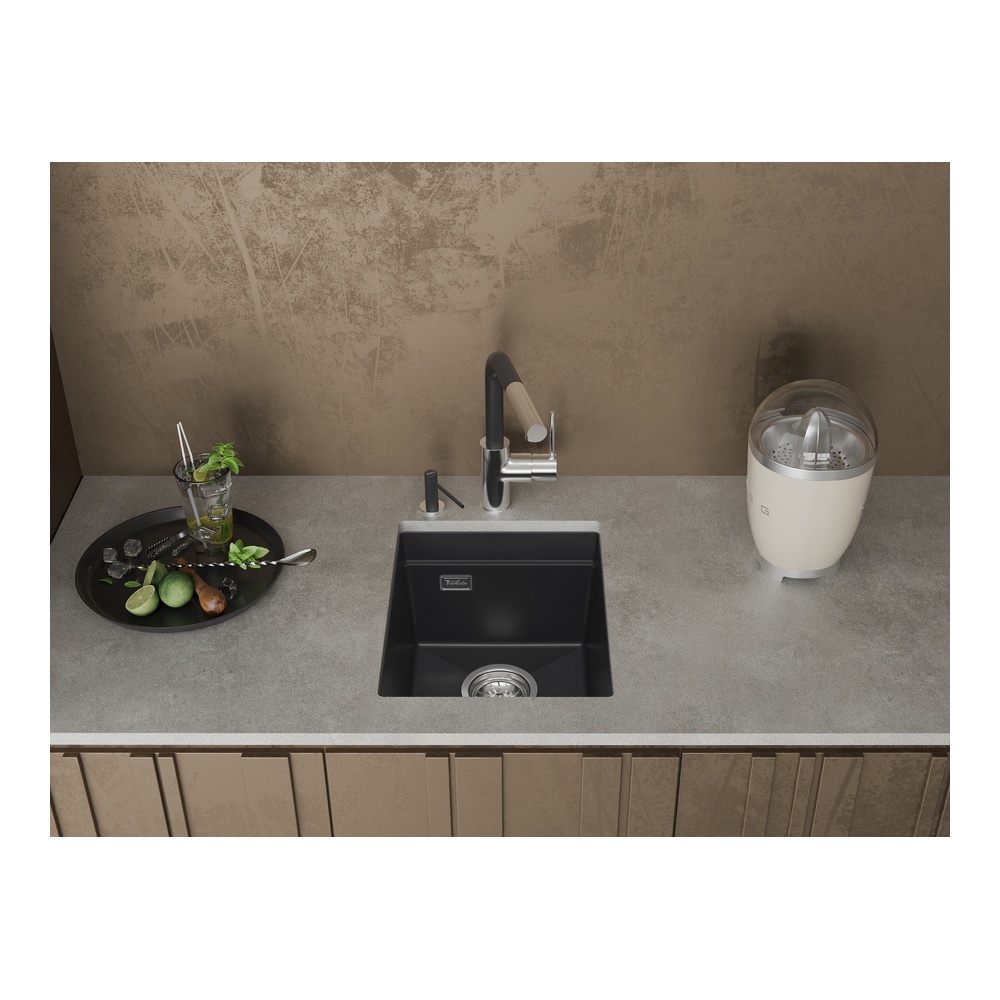 Кухонная мойка Rivelato LINO LN-354, антрацит. Для кухонного шкафа 40 см. Материал — кварцевый композит. Производство: Италия. Гарантийный срок: 5 лет.