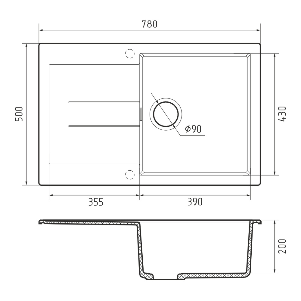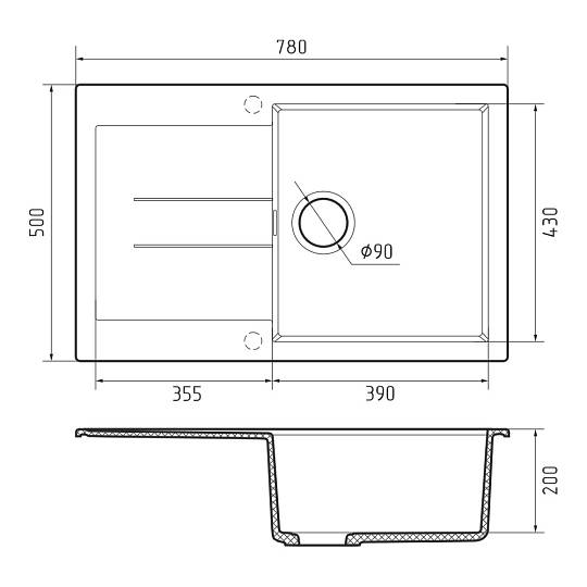 Кухонная мойка Rivelato LUMO LM-7850, коричневый. Для кухонного шкафа 60 см. Материал — кварцевый композит. Производство: Италия. Гарантийный срок: 5 лет.