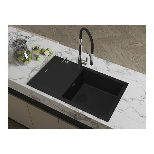 Кухонная мойка Rivelato LUMO LM-8650, черный. Для кухонного шкафа 90 см. Материал — кварцевый композит. Производство: Италия. Гарантийный срок: 5 лет.