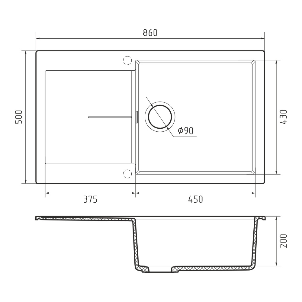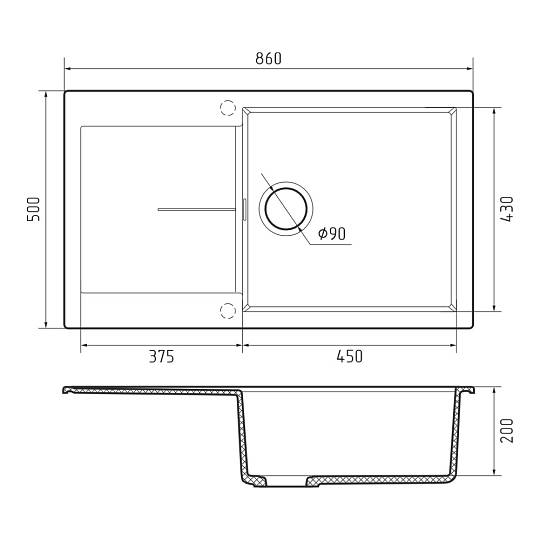 Кухонная мойка Rivelato LUMO LM-8650, молочный. Для кухонного шкафа 90 см. Материал — кварцевый композит. Производство: Италия. Гарантийный срок: 5 лет.