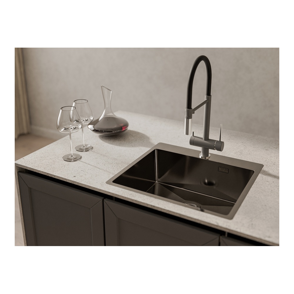 Кухонная мойка Rivelato Rinox 5450 PVD, черный. Для кухонного шкафа 60 см. Материал — нержавеющая сталь. Производство: Китай. Гарантийный срок: 5 лет.