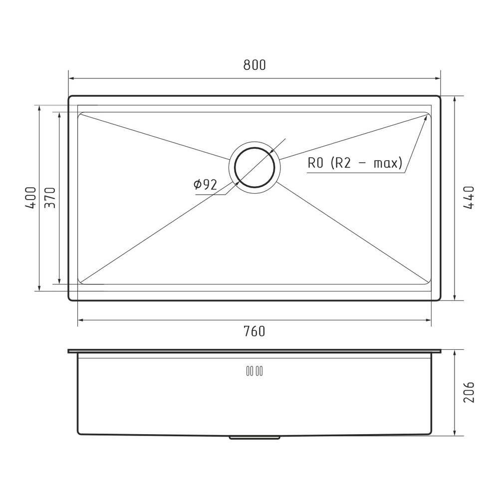 Кухонная мойка Rivelato Rinox 8044 UN, нержавеющая сталь. Для кухонного шкафа 90 см. Материал — нержавеющая сталь. Производство: Китай. Гарантийный срок: 5 лет.
