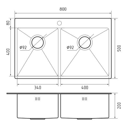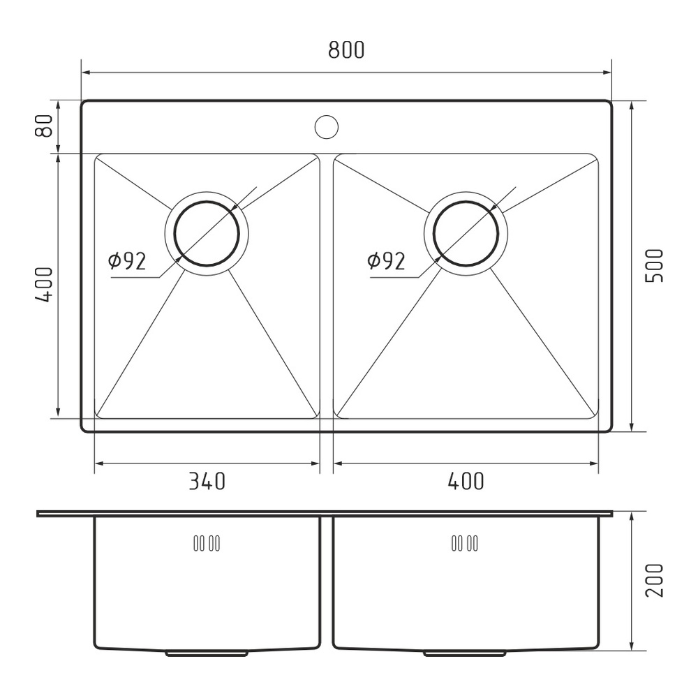 Кухонная мойка Rivelato Rinox 8050 B2, нержавеющая сталь. Для кухонного шкафа 90 см. Материал — нержавеющая сталь. Производство: Китай. Гарантийный срок: 5 лет.