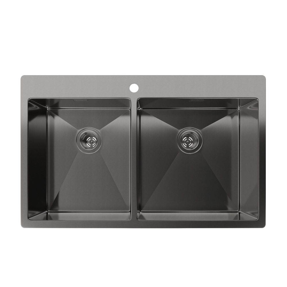 Кухонная мойка Rivelato Rinox 8050 B2 PVD, черный. Для кухонного шкафа 90 см. Материал — нержавеющая сталь. Производство: Китай. Гарантийный срок: 5 лет.