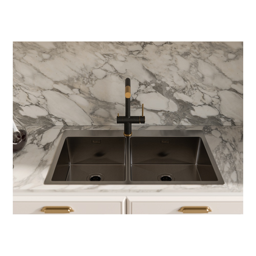 Кухонная мойка Rivelato Rinox 8050 B2 PVD, черный купить за 51 199 руб.