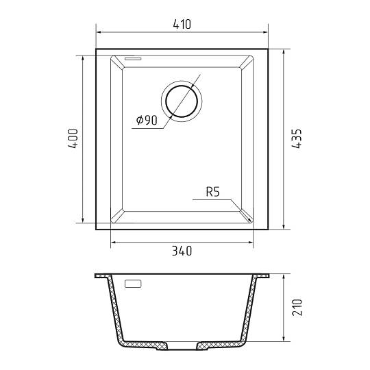 Кухонная мойка Rivelato STRIA SR-4134, черный. Для кухонного шкафа 45 см. Материал — кварцевый композит. Производство: Италия. Гарантийный срок: 5 лет.