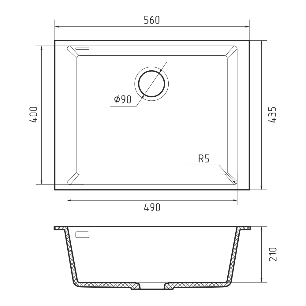Кухонная мойка Rivelato STRIA SR-5649, серый. Для кухонного шкафа 60 см. Материал — кварцевый композит. Производство: Италия. Гарантийный срок: 5 лет.