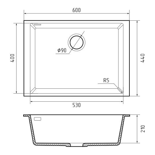Кухонная мойка Rivelato STRIA SR-6053, коричневый. Для кухонного шкафа 70 см. Материал — кварцевый композит. Производство: Италия. Гарантийный срок: 5 лет.