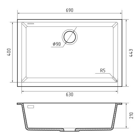 Кухонная мойка Rivelato STRIA SR-6963, черный. Для кухонного шкафа 80 см. Материал — кварцевый композит. Производство: Италия. Гарантийный срок: 5 лет.