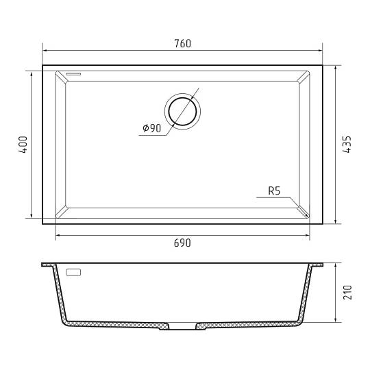 Кухонная мойка Rivelato STRIA SR-7669, черный. Для кухонного шкафа 80 см. Материал — кварцевый композит. Производство: Италия. Гарантийный срок: 5 лет.