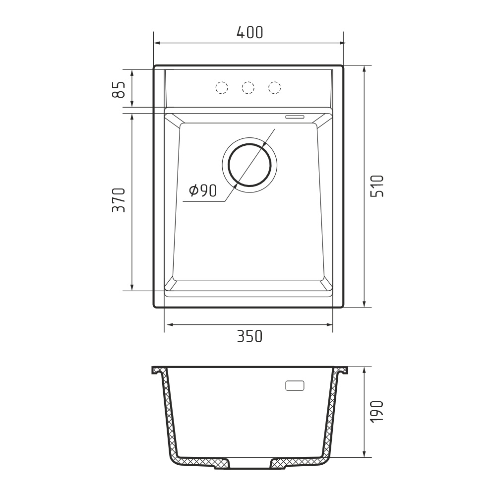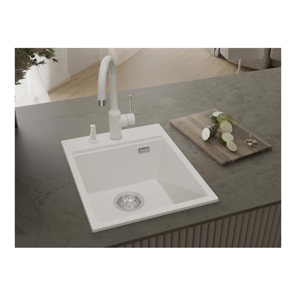 Кухонная мойка Rivelato TESORO TR-405, иней. Для кухонного шкафа 40 см. Материал — кварцевый композит. Производство: Италия. Гарантийный срок: 5 лет.