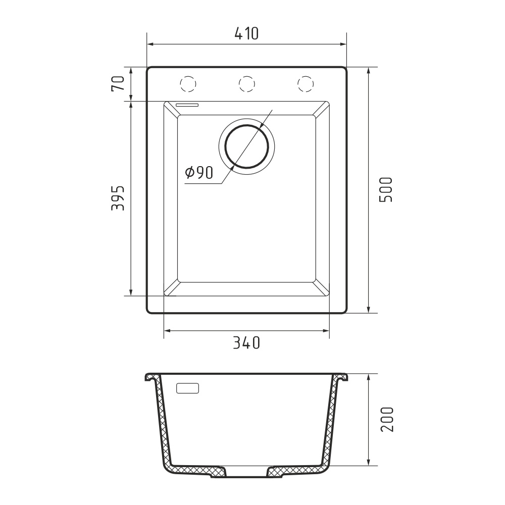 Кухонная мойка Rivelato ZENO ZN-4150, черный. Для кухонного шкафа 45 см. Материал — кварцевый композит. Производство: Италия. Гарантийный срок: 5 лет.