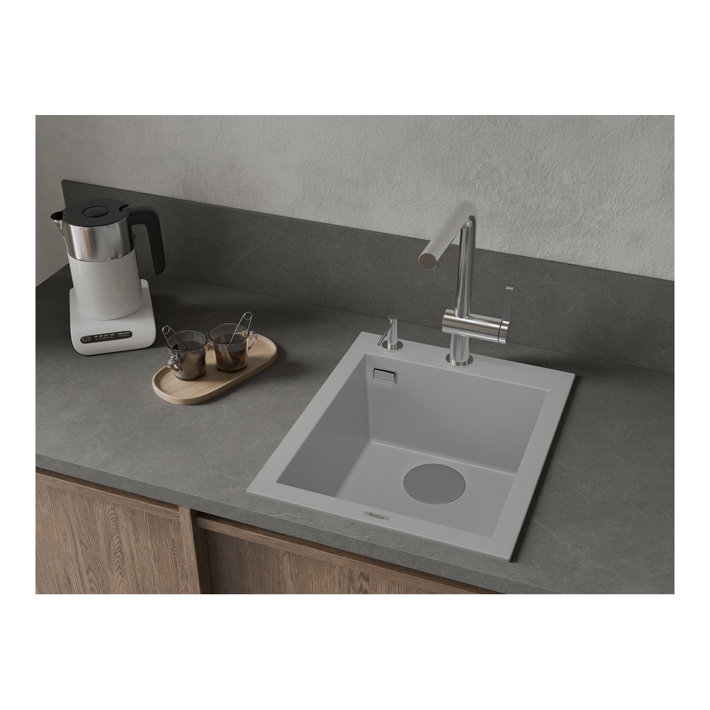 Кухонная мойка Rivelato ZENO ZN-4150, серый. Для кухонного шкафа 45 см. Материал — кварцевый композит. Производство: Италия. Гарантийный срок: 5 лет.