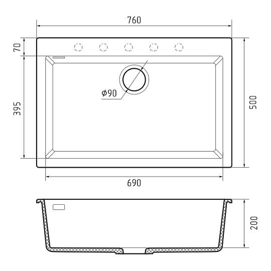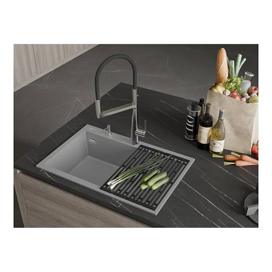 Кухонная мойка Rivelato ZENO ZN-7650, серый. Для кухонного шкафа 80 см. Материал — кварцевый композит. Производство: Италия. Гарантийный срок: 5 лет.