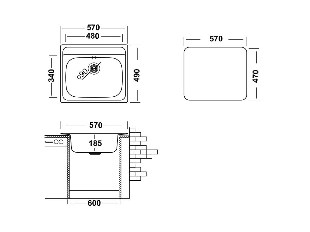 Модель врезного способа монтажа, имеет размеры 570×490 мм и предназначена для установки в тумбу от 60 см. Такая раковина идеально подойдет для небольшой кухни.