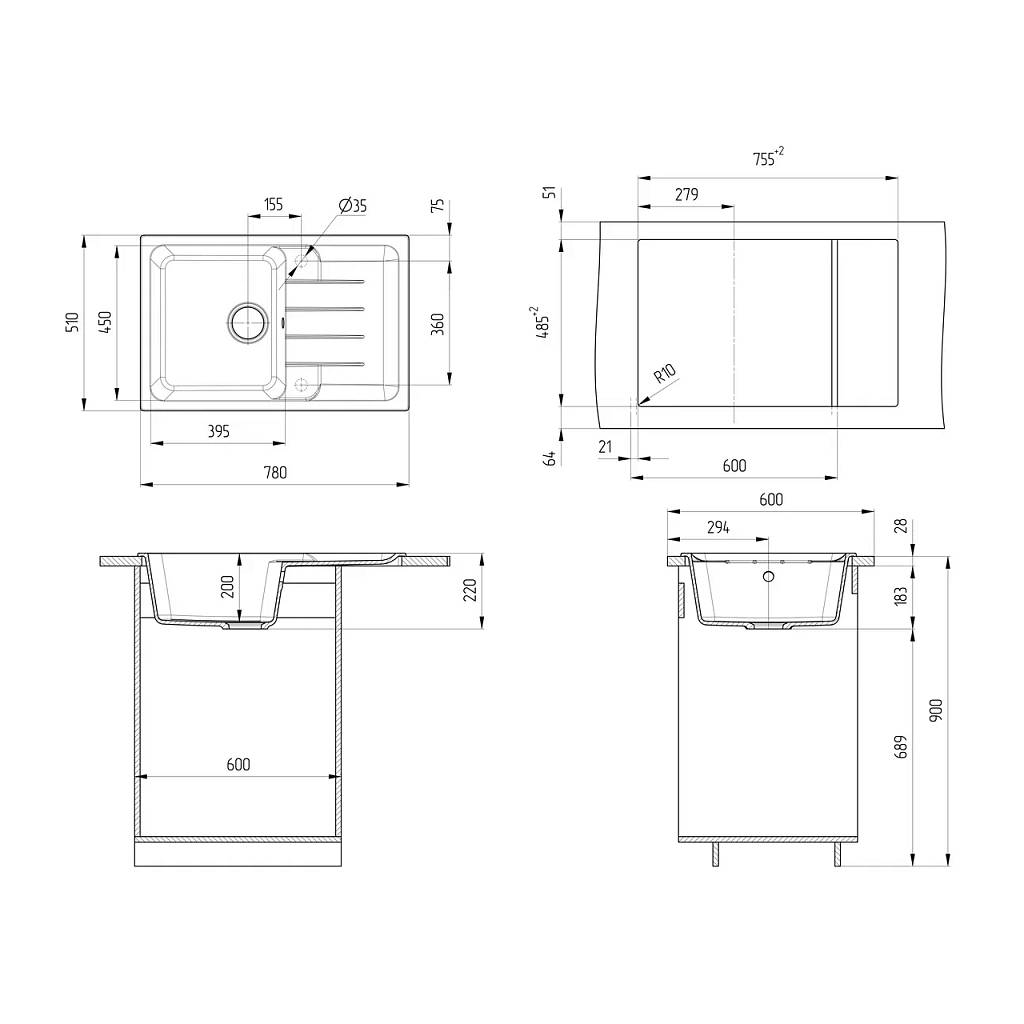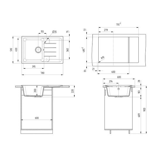 Кухонная мойка ULGRAN Quartz Gerda 780 – это практичная односекционная реверсивная прямоугольная модель с глубокой чашей 200 мм и большим крылом, изготовленная на современном автоматизированном оборудовании из высококачественных кварцевых композитов по инжекционной технологии (литье под давлением).