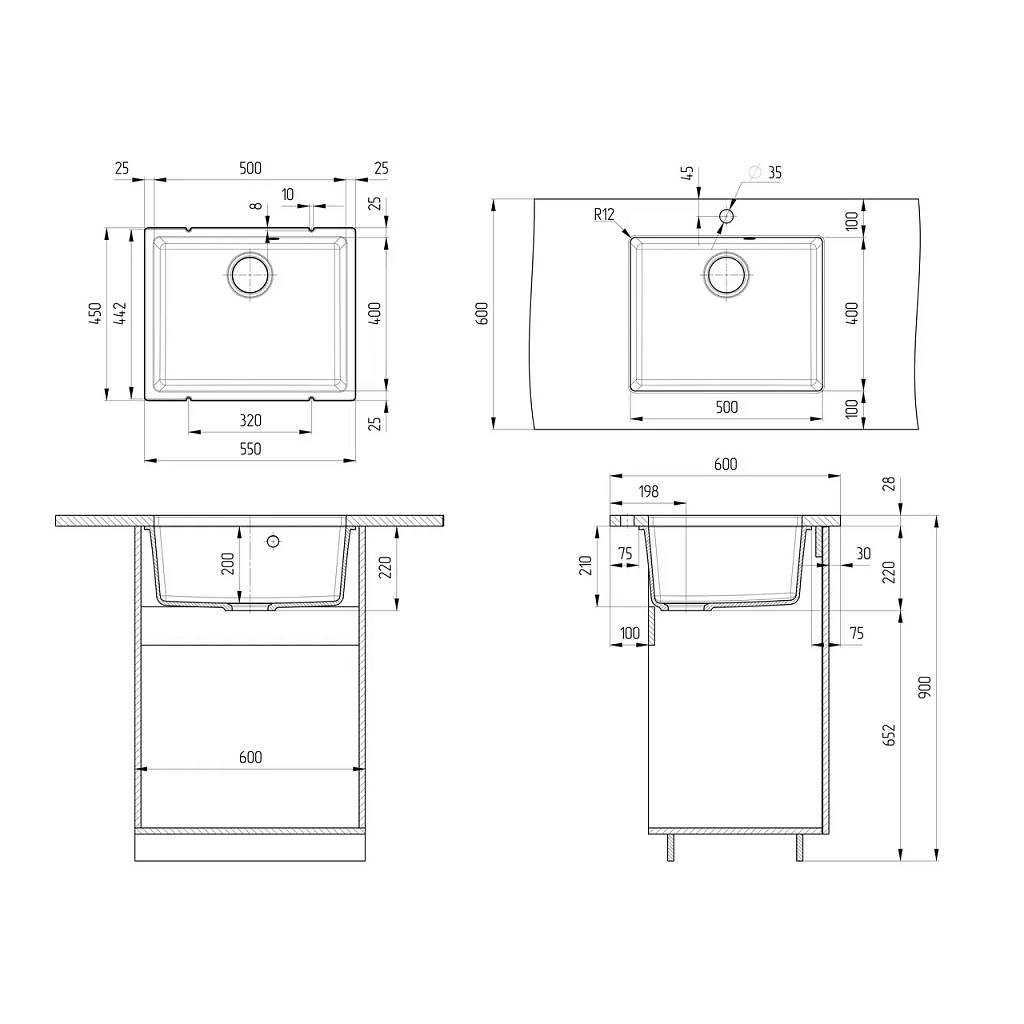 Кухонная мойка ULGRAN Quartz Underground 500 – это односекционая модель подстольного монтажа, изготовленная на современном автоматизированном оборудовании из высококачественных кварцевых композитов по инжекционной технологии (литье под давлением). Кварцевый композит является поистине инновационным материалом в производстве кухонных моек! Он сочетает в себе такие неоспоримые преимущества как повышенная влагостойкость и термостойкость, возможность придать мойке при изготовлении практичный и функциональный дизайн, увеличенное сопротивление внешнему износу, снижение уровня шума при падении струи воды, безусловная гигиеничность и простота в уходе, а также сравнительно малый вес при высокой прочности. Мойка устанавливается в кухонный шкаф шириной от 60 см.