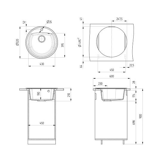 ULGRAN U-603 - круглая кухонная мойка с вместительной чашей и  отверстием под смеситель. Данная мойка устанавливается в шкаф шириной от 45 см. В комплектацию входит  сливная арматура с гофротрубой, технический паспорт и гарантийный талон. Существует возможность установки дозатора ULGRAN слева от смесителя - доп. отверстие в таком случае потребитель делает самостоятельно с помощью фрезы Форстнера (не входит в комплектацию и приобретается отдельно). Заводская гарантия составляет 2 года, а срок службы данной мойки, при соблюдении основных правил ухода за ней, составляет более 10 лет.