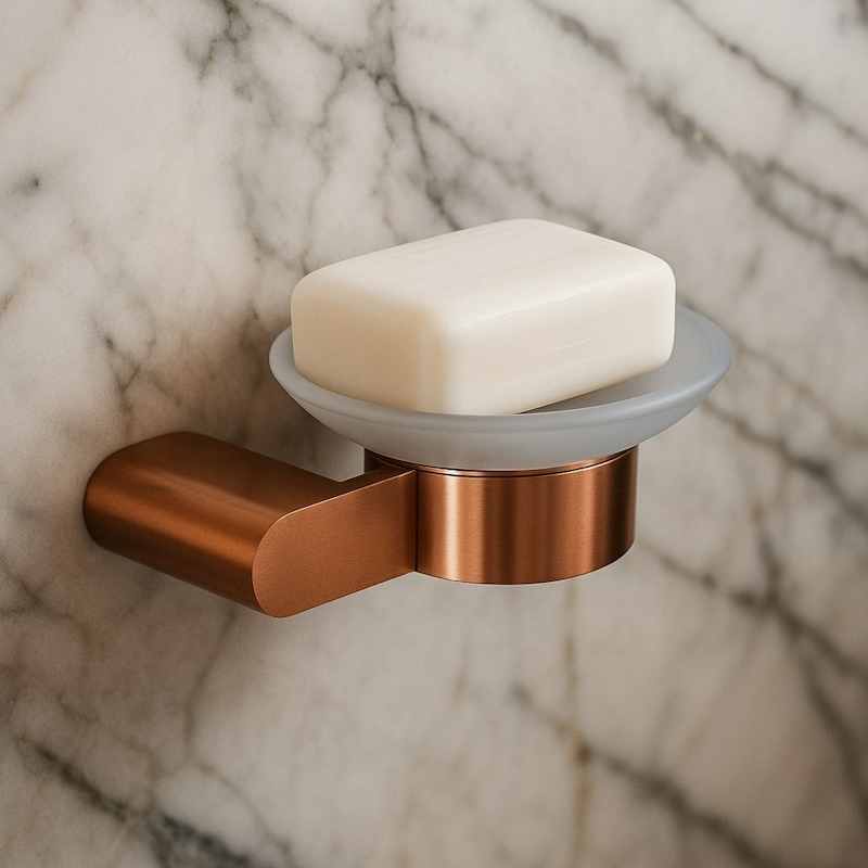 Подвесная мыльница BLISS в бронзовом оттенке с матовым стеклом. Настенное крепление освобождает столешницу, SUS 304 с антиследовым покрытием гарантирует надежность и легкость ухода.