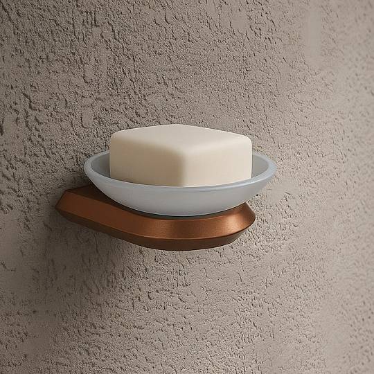 Подвесная мыльница SPACE в бронзовом оттенке с матовым стеклом. Настенное крепление делает ванную аккуратной, корпус ZAMAK + SUS-201 с антиследовым покрытием долговечен и прост в уходе.