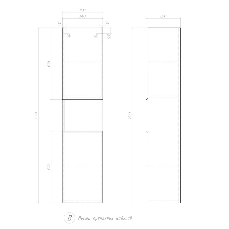 Пенал VIGO Wing 35см, белый: 2 дверцы, петли с механизмом доводчика, 4 полки ЛДСП, интегрированная ручка, 2 навеса. Универсальная (петли дверок перевешиваются на разные стороны).