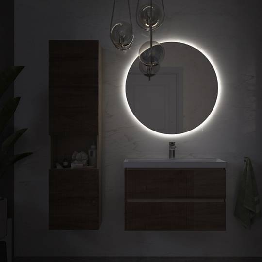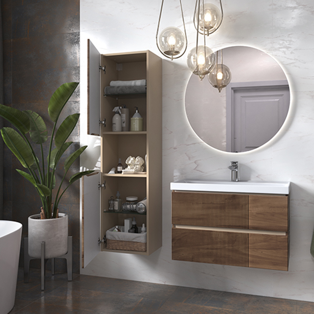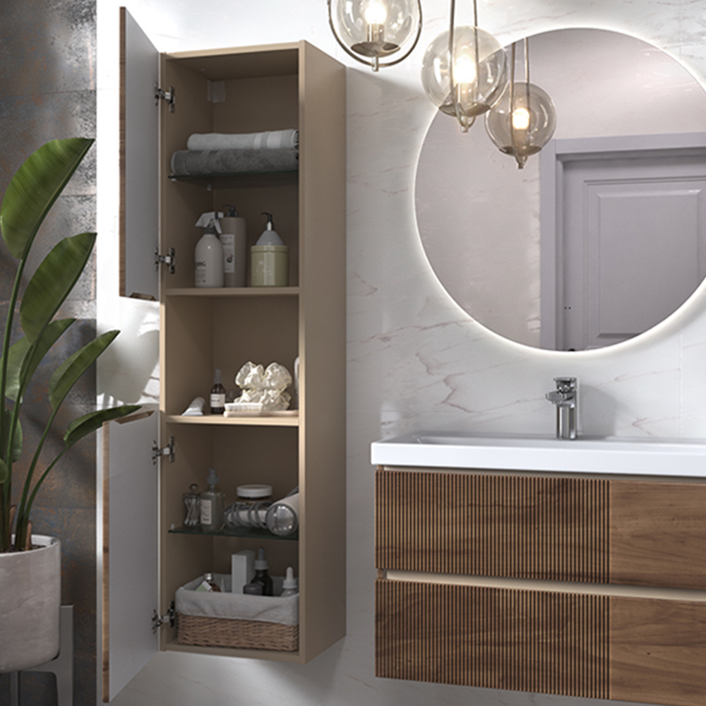 Пенал (43см) Velvex Mondi 307, акация темная: 2 стеклянные полки, петли с доводчиком.