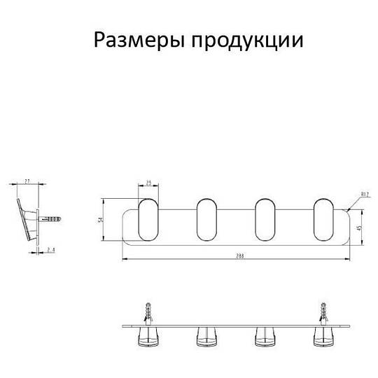 Планка с 4 крючками Grocenberg AC0054BL, черный купить за 3 600 руб.