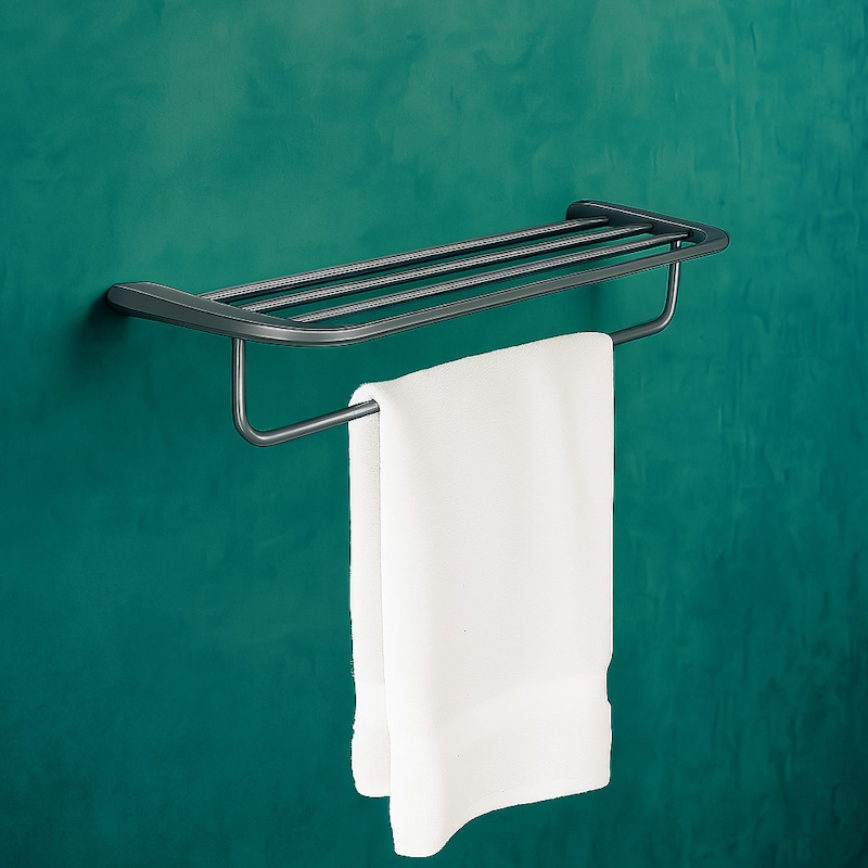 Полка для полотенец в цвете «воронёная сталь» добавит глубины и графичности пространству. Прочный ZAMAK и нержавеющая сталь SUS-201 устойчивы к влаге, а матовая поверхность с антиследовым покрытием сохраняет аккуратный вид каждый день