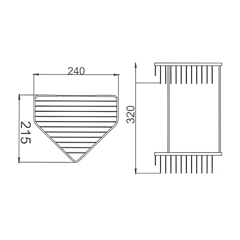 Конструкция из нержавеющей стали гарантирует долговечность и устойчивость к влаге, а зеркальное хромовое покрытие не только выглядит эффектно, но и легко очищается, сохраняя безупречный внешний вид. Два яруса позволяют удобно разместить косметику, банные принадлежности и декоративные элементы, рационально используя угловую зону.