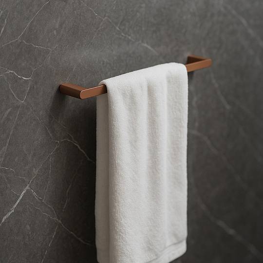 Современный держатель для полотенец в бронзовом цвете создаёт тёплую и элегантную атмосферу в ванной. Выполнен из нержавеющей стали SUS 304 для надёжности и устойчивости к коррозии. Матовая поверхность с антиследовым покрытием легко поддерживается в чистоте.