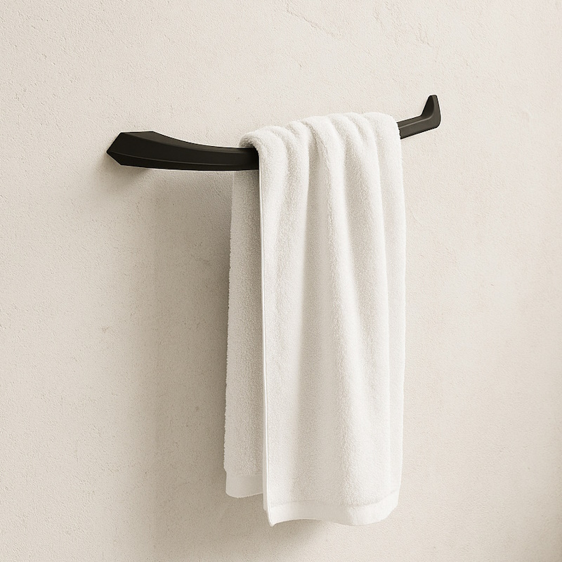 Матовый черный держатель с антиследовым покрытием добавляет строгий минимализм в интерьер ванной. Прочный сплав ZAMAK + SUS-201 обеспечивает надежность и долговечность.