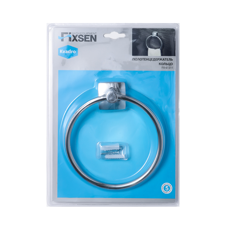Кольцо для полотенец FIXSEN KVADRO FX-61311, хром. Метод крепления: шурупы. Конструкция: кольцо.